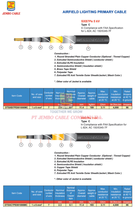 PT Solusi Inti Bersama telah dikenal luas sebagai salah satu distributor kabel terkemuka di Indonesia. Dalam mendukung pembangunan infrastruktur penerbangan yang semakin maju, perusahaan ini menyediakan produk kabel spesialis berkualitas tinggi, salah satunya adalah Cable Jembo untuk Airfield Lighting Primary Cable. Kabel ini dirancang khusus untuk keperluan sistem penerangan bandara (airfield lighting), sesuai dengan standar internasional FAA L-824 dan AC 150/5345-7F.
