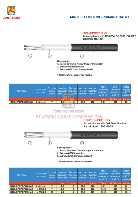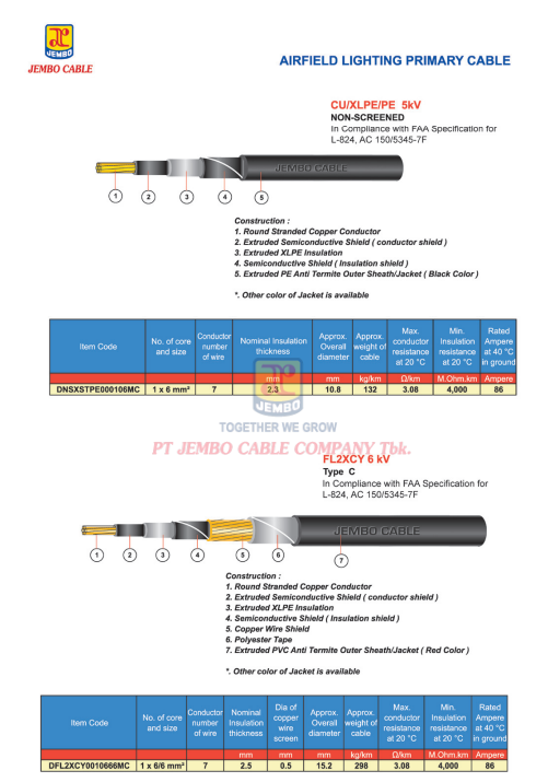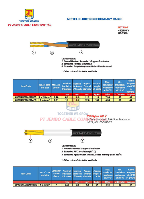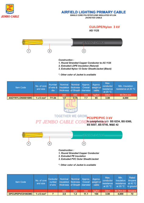 Tipe dan Spesifikasi Produk Cable Jembo untuk Airfield Lighting