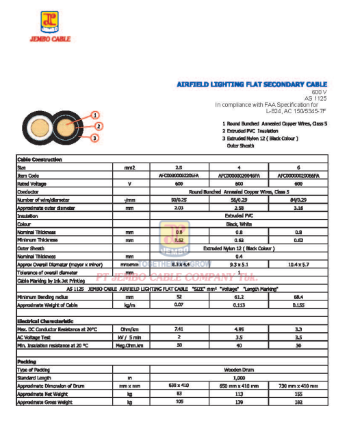 Jenis Kabel Sekunder (Secondary Cable) Jembo untuk Airfield Lighting – 600V