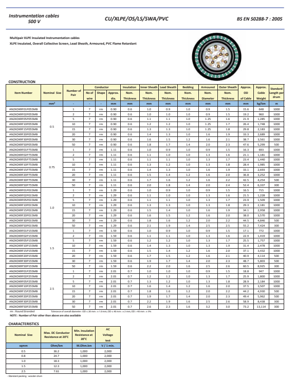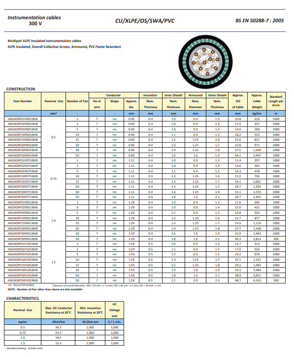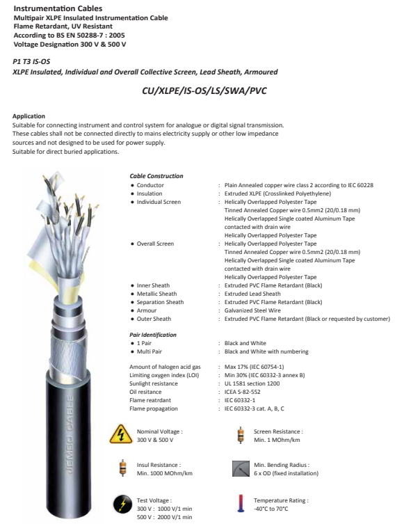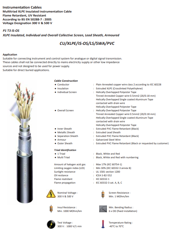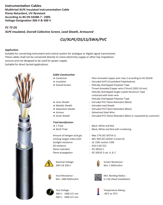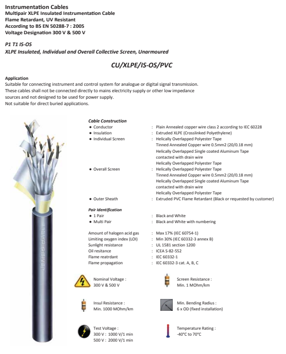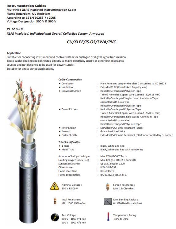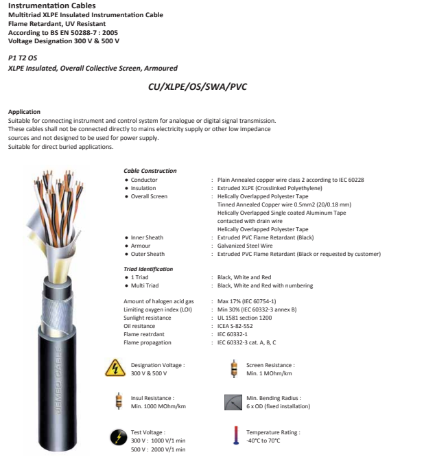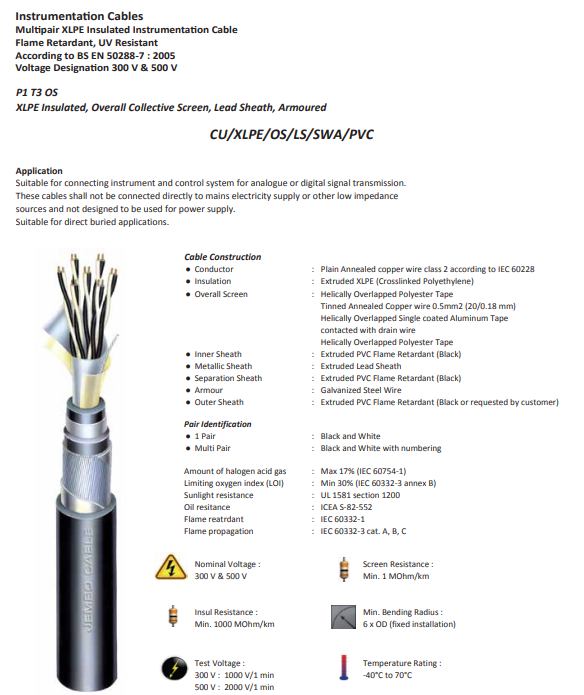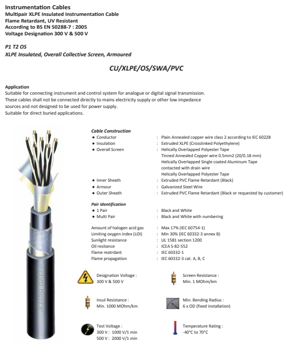 Kabel ini dirancang dengan berbagai struktur, baik unarmoured maupun armoured, serta dengan tambahan overall screen (OS) dan individual screen (IS) untuk performa proteksi sinyal yang optimal.