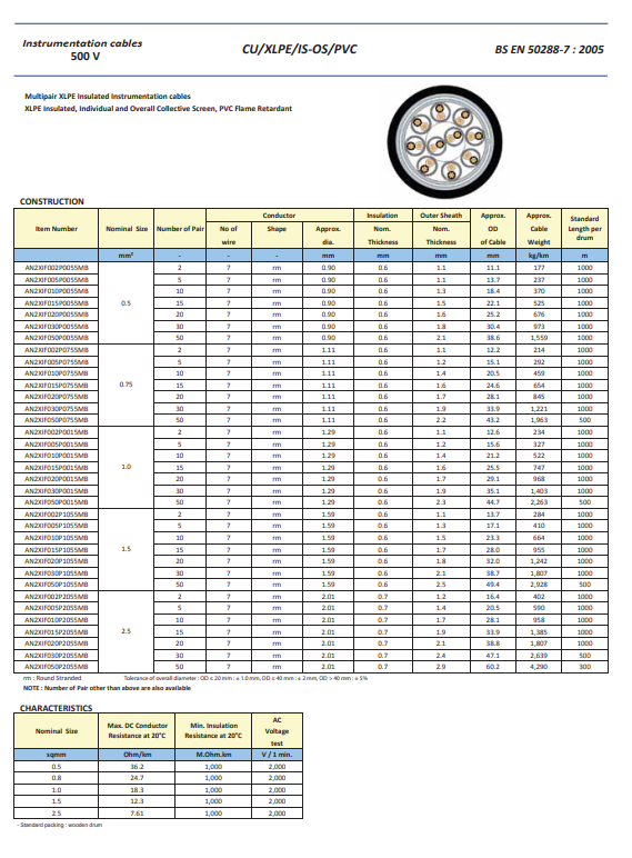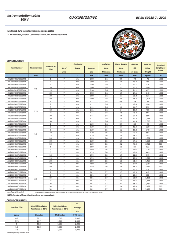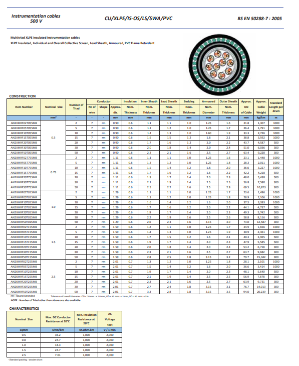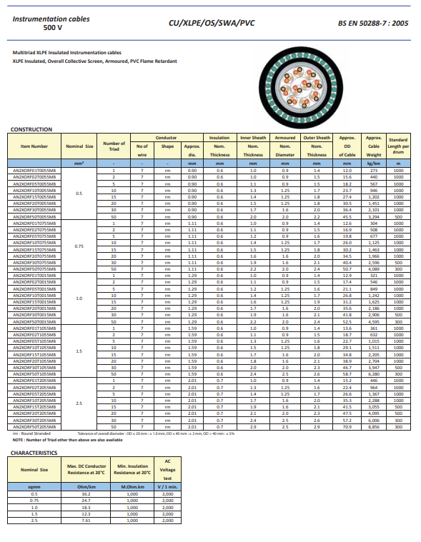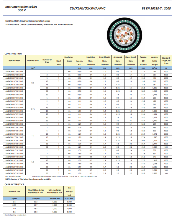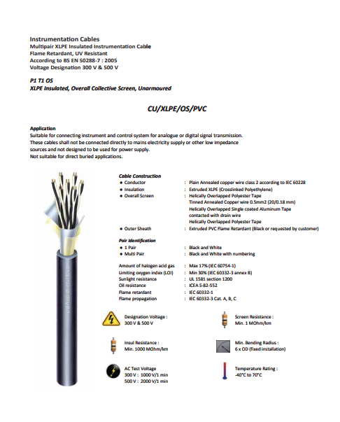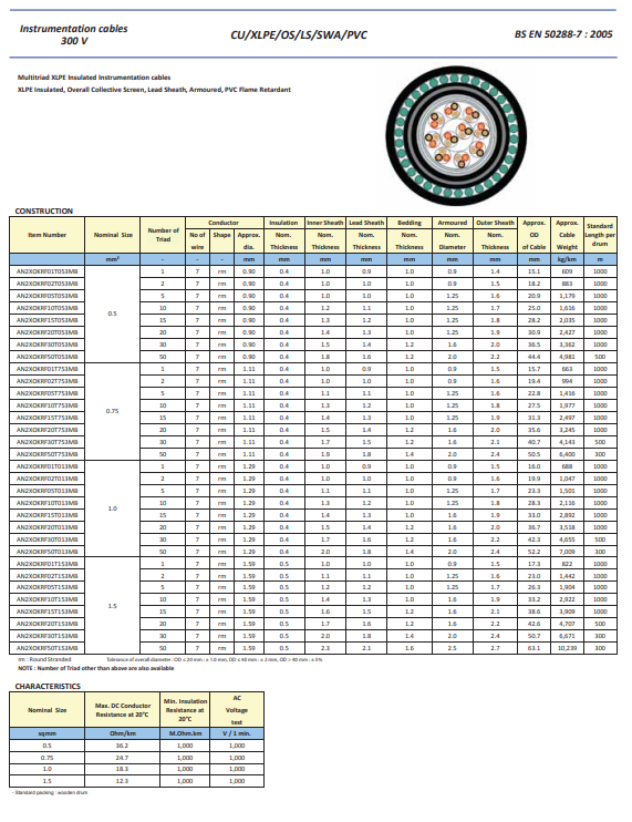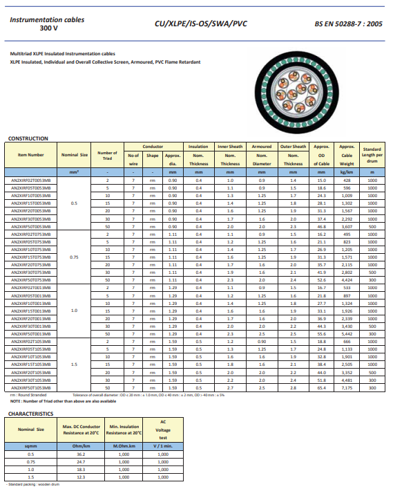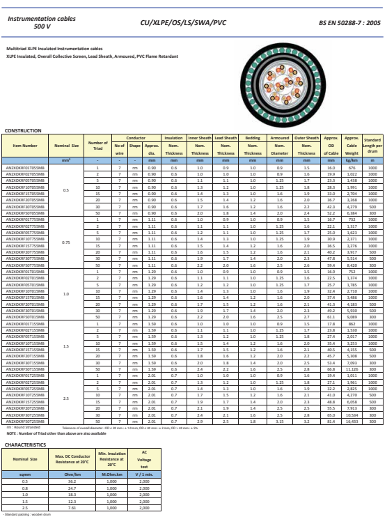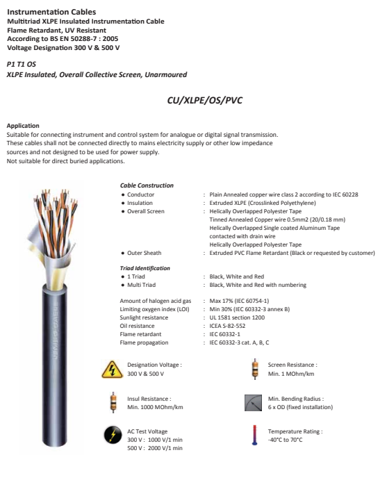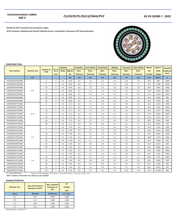 Kabel ini dirancang dengan berbagai struktur, baik unarmoured maupun armoured, serta dengan tambahan overall screen (OS) dan individual screen (IS) untuk performa proteksi sinyal yang optimal.