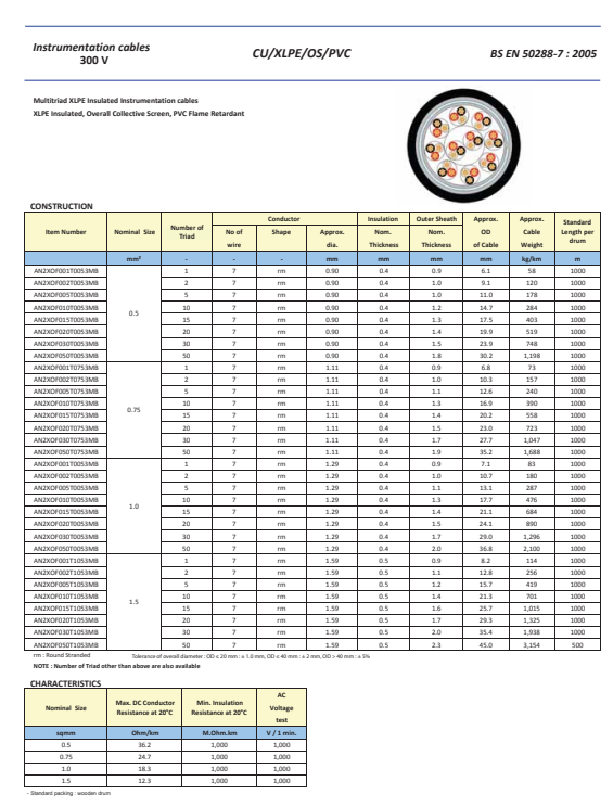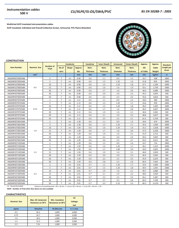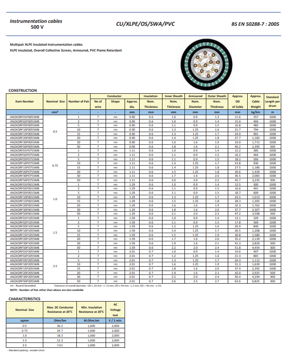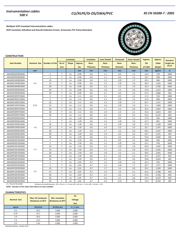 • Konfigurasi: Konduktor tembaga, isolasi XLPE, pelindung kolektif, jaket luar PVC.