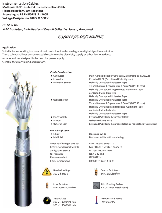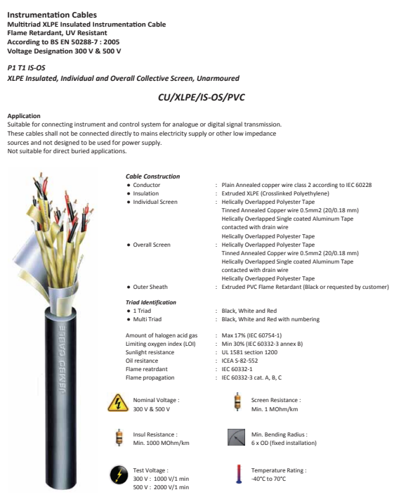 Instrumentation Cable dengan isolasi XLPE (Cross Linked Polyethylene) memiliki sejumlah keunggulan teknis, antara lain: